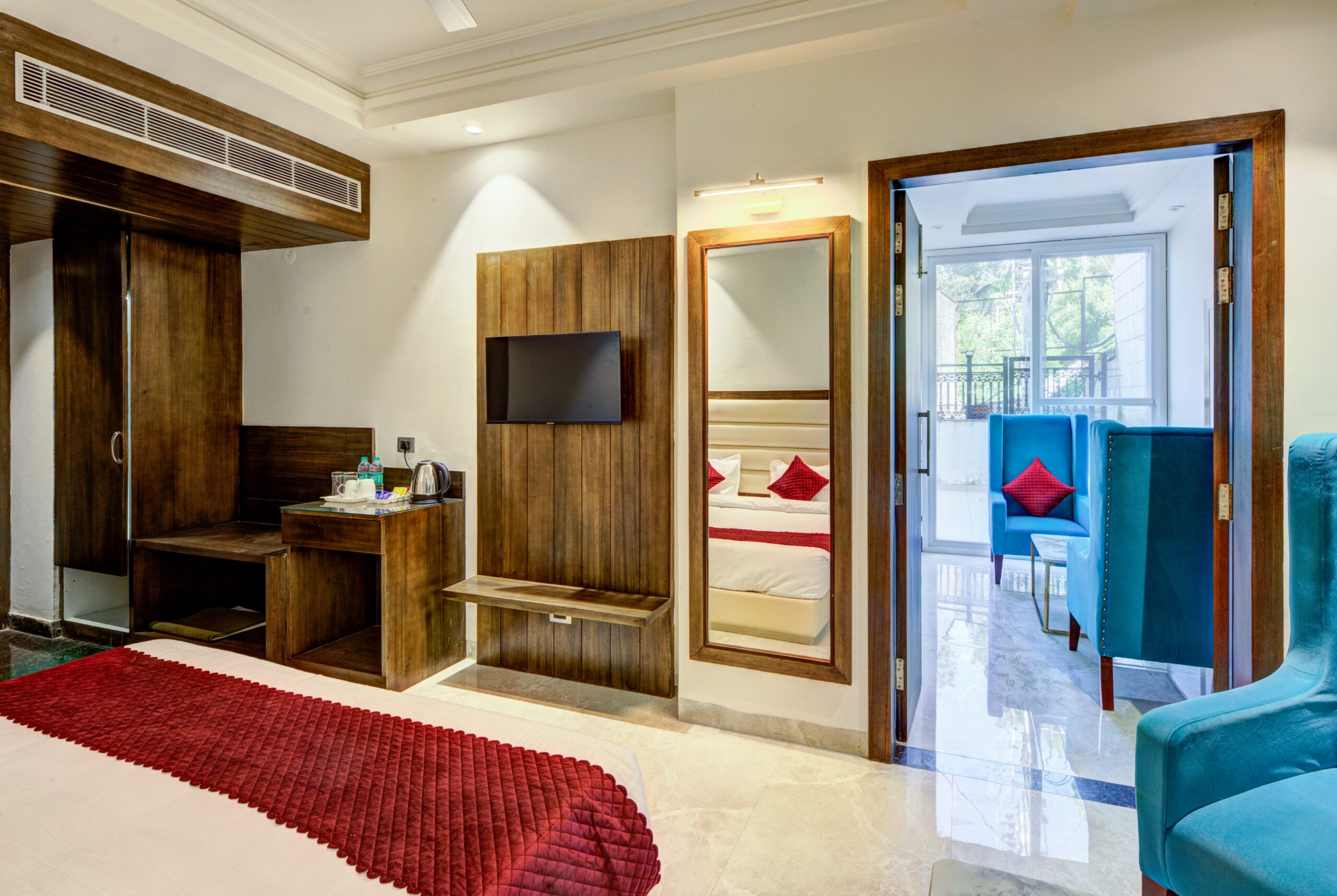 With private dining/living area, enjoy the best in lifestyle experiences like a king. Luxury rooms with a large bed, private bathroom, selected shower products, Smart TVs, Tea / Coffee makers, minibar with refreshments, free high speed internet, 24*7 hot/cold water. The luxury room features separate living cum dining room.